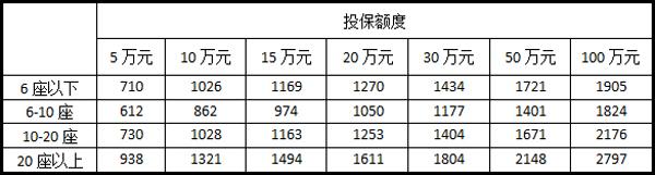 一般每个座位的保额1-5万不等,副驾驶位大概每1万元的保额,保费为40元;乘客位大概每1万元的保额,保费为27元。具体的费率表如下:
