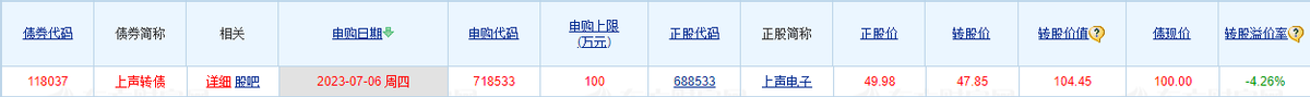 7月6日,可转债打新市场迎来上声电子(688533)发行的可转债——上声转债。它的发行规模仅5.20亿元,规模偏低。债券评级为A+,评级较高。