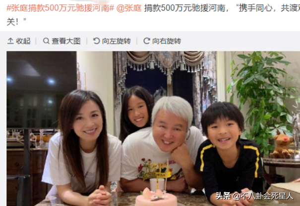 第三,河南灾情的时候,张庭夫妻第一时间捐了500万出来,这个数目在明星中已经算是最高的了。