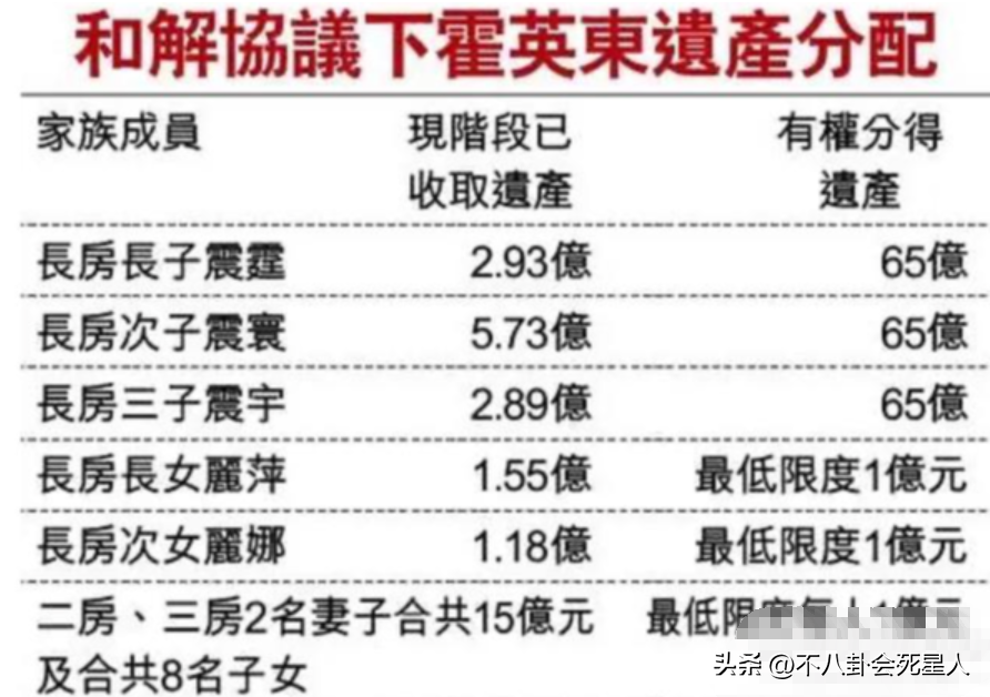 早前在霍家分产的时候,拿出来分配的资产有300亿,当时大房分到200亿,最后分到霍启刚爸爸手上大概是65亿,更别说分到霍启刚夫妻手上的钱了。