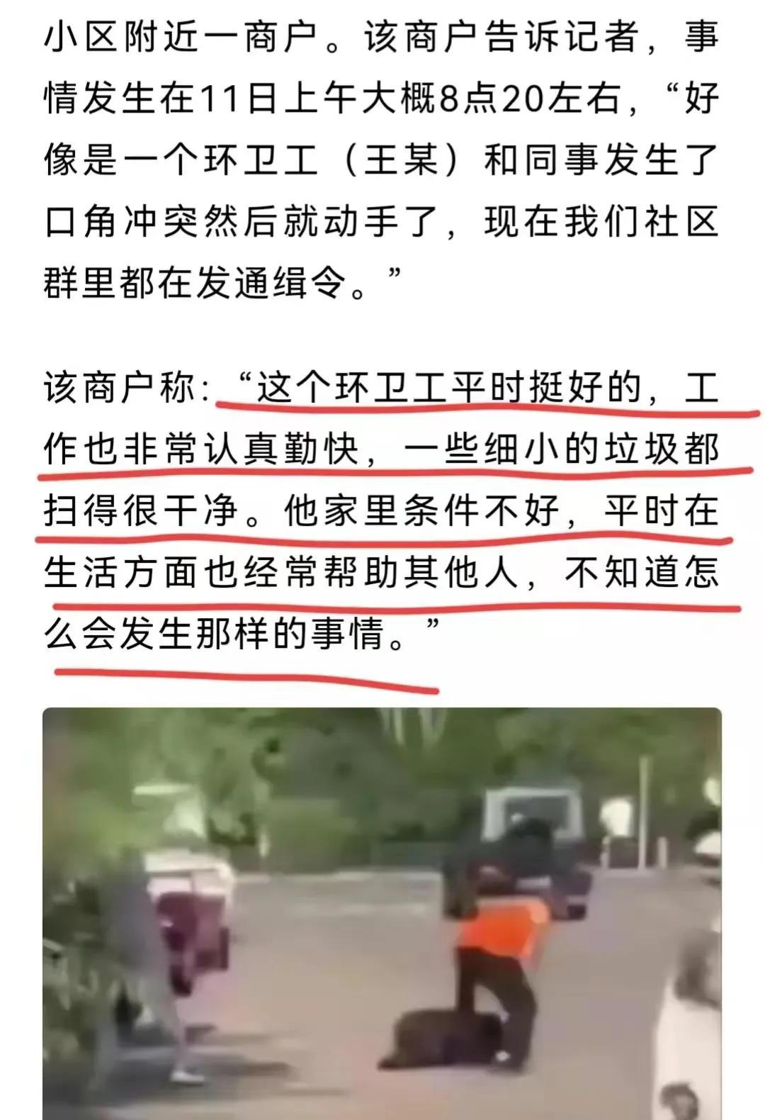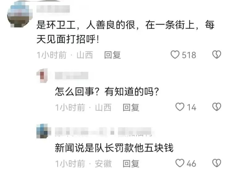 2023年7月11日,山西省朔州市朔城区某一小区,一位56岁环卫工人王某,因被环卫队长罚了5元钱起了争执,