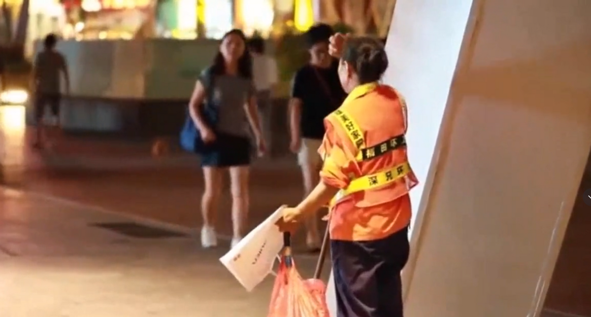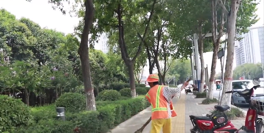 ,说这是他扫完后,过路的人又扔的,刚坐下来歇歇,