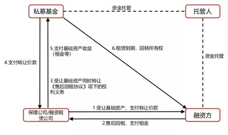 此前,为了通过备案,私募地产基金结构中间加了一个小贷/保理/融资租赁/典当公司,通过转让资产或收益权实现融资方向私募地产基金支付租金,但本质上依旧没有改变底层资产的借贷性质,此后,中基协出台的备案须知中明确规定“私募基金的投资不应是借贷活动,底层标的不得为民间借贷、小额贷款、保理资产等《私募基金登记备案相关问题解答(七)》所提及的(民间借贷、民间融资、配资业务、小额理财、小额借贷、P2P/P2B、众筹、保理、担保、房地产开发、交易平台等业务)属于借贷性质的资产或其收(受)益权”的规定。当时,监管层虽然并没有把融资租赁和典当的收益权转让纳入到被禁止的范围,但随后的实际操作中,这两种通道也被禁止了。