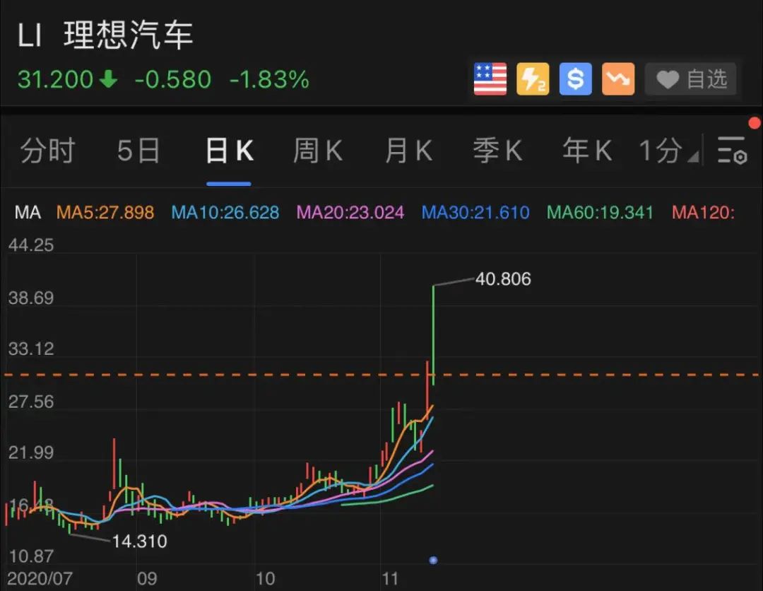 上市不到半年的理想汽车和小鹏汽车,也均已涨超170%。