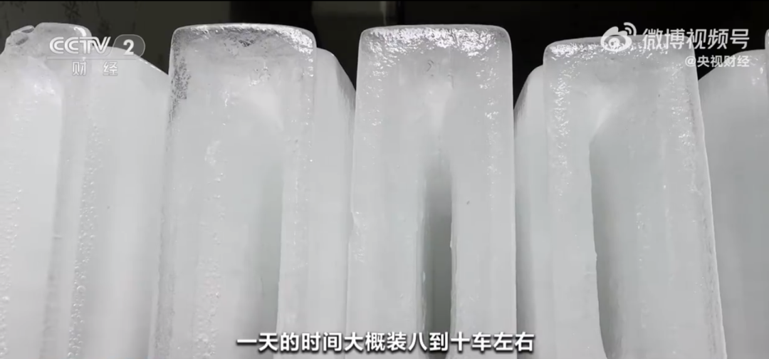 随着气温升高,冰块需求急剧上升。在湖北襄阳市,当地制冰企业开足马力生产,“冰生意”异常火爆。某制冰企业运冰工人告诉记者:“一天装八到十车冰左右,现在生产旺季一个月收入大概在7000元到8000元左右。”该厂的制冰机是一体化设备,一次抽水25吨,从装水到脱模,需要经历8小时的制作过程,从5月份开始订单激增,制冰车间每天都是满负荷运转。据了解,这家工厂制作出来的冰每块重达60斤,在避免阳光直射的情况下,可以使用五六个小时,主要销往当地农贸生鲜市场和企业生产车间使用。为应对夏季持续高温天气,制冰厂的两个冷库还提前储存了300吨的应急用冰。预计7月中旬后,每天用冰量还会增加20%左右。