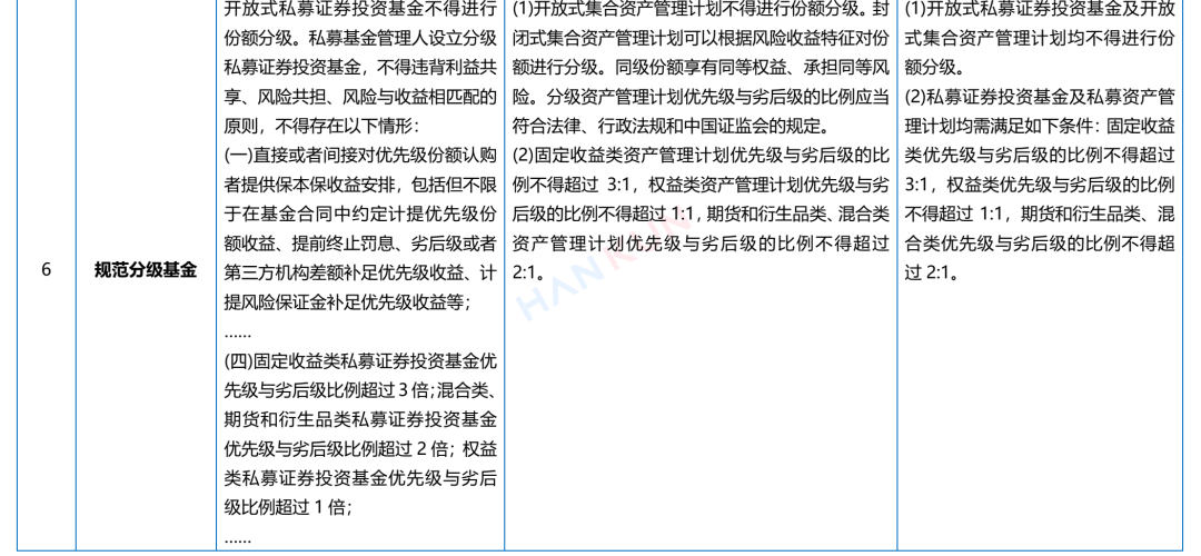 我们将私募证券投资基金与私募资产管理计划从适用范围、募集及存续门槛、申赎管理、投资范围、组合投资等方面进行对比,以便观察两类业态的核心合规要点。