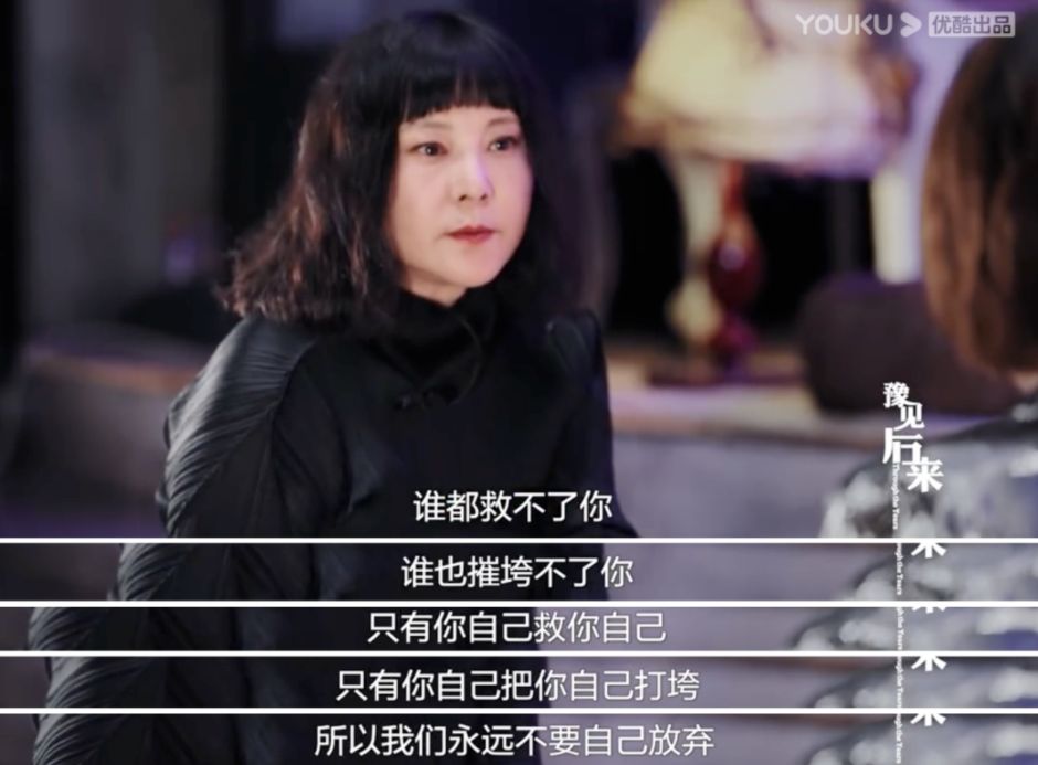 “谁也救不了你,谁也摧垮不了你,只有你自己救你自己,只有你自己把你自己打垮,所以我们永远不要自己放弃。”