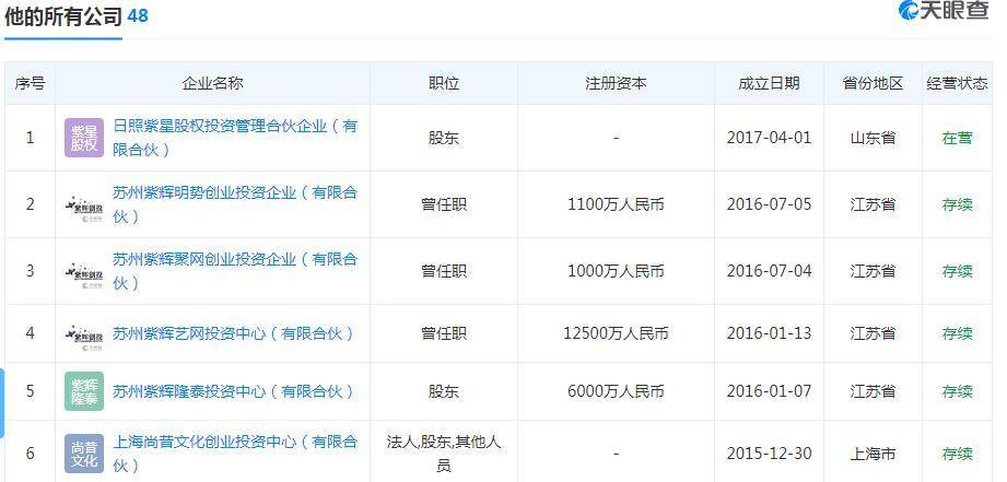 天眼查显示,郑刚为紫辉创投CEO,紫辉创投是立足本土的创投和私募股权投资基金管理机构,曾投资过映客、陌陌、悟空租车等产品。旗下管理两个投资基金:紫辉投资合伙企业、天沐投资合伙企业。基金管理人为,苏州紫辉乾麟投资管理有限公司以及上海紫辉创业投资有限公司,郑刚为前者的法定代表人,注册资本500万元。
