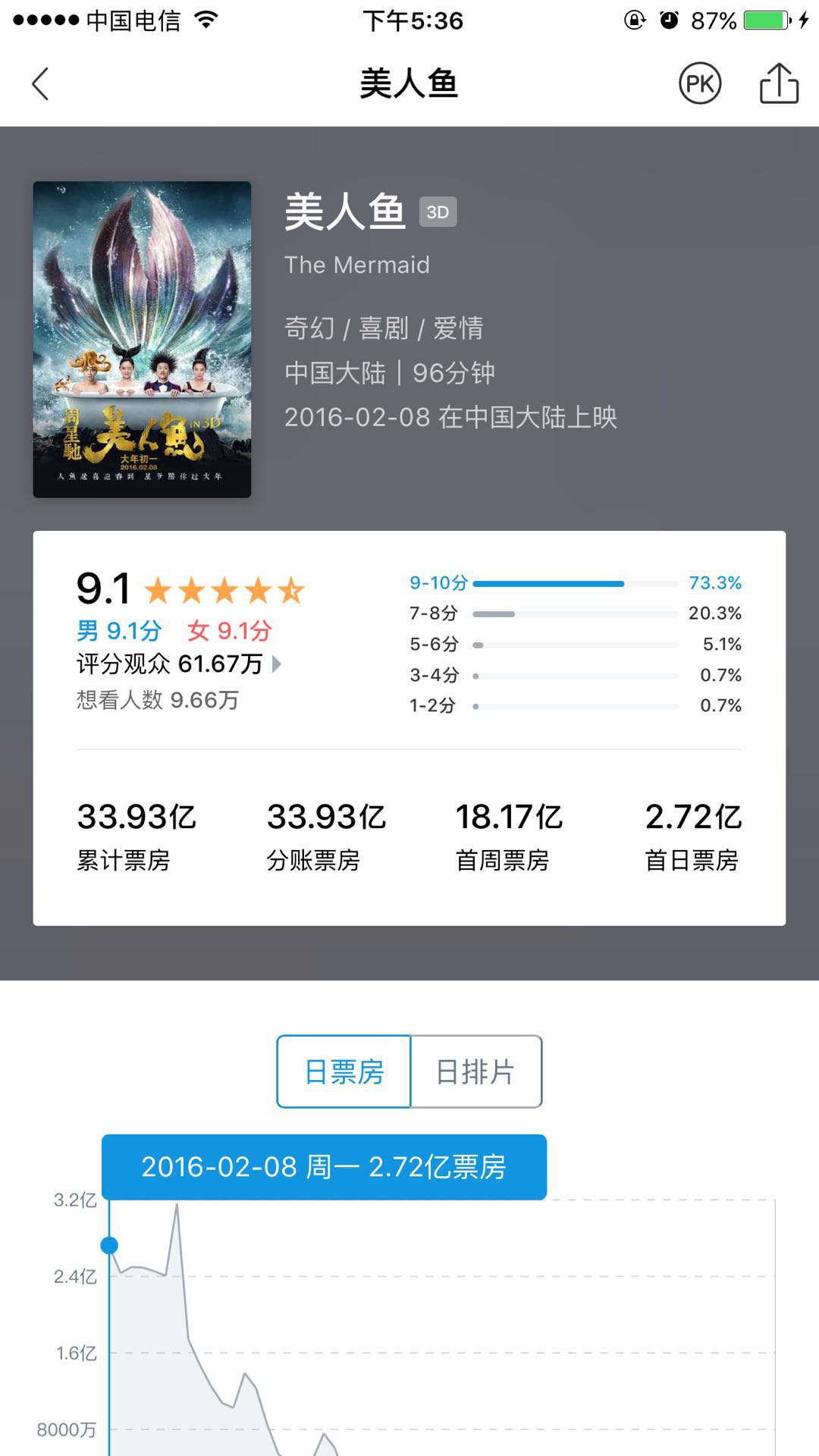 但7天假期结束后,《红海行动》一路逆袭,在《黑豹》3月9号公映前连续十多天登顶内地单日票房冠军,最终在今天打破《美人鱼》的亚军纪录。