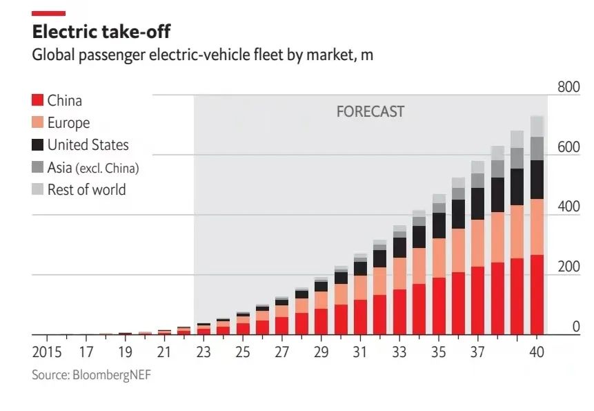 彭博社新能源财经(Bloomberg NEF)表示,到2025年,电动汽车将占汽车总销量近四分之一,在欧洲和中国,这一比例将接近40%。