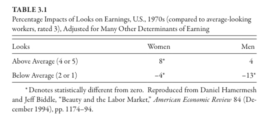 “看起来更漂亮的员工赚得更多,不是因为他们漂亮,而是因为他们更健康、更聪明、有更好的个性(更自觉、更外向,更少神经质)