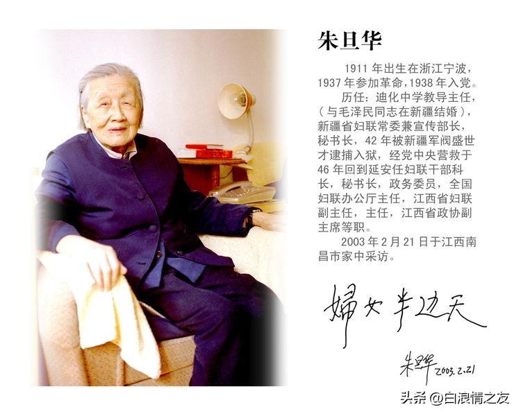 路上走了三个来月,五月到达迪化市(新疆乌鲁木齐),在“新兵营”集中学习了一段时间,七月,朱旦华被分配到省立迪化女子中学任教导主任,不久,被推选为新疆省妇女协会常务委员会委员兼宣传部长秘书长,新疆省政务委员会委员。