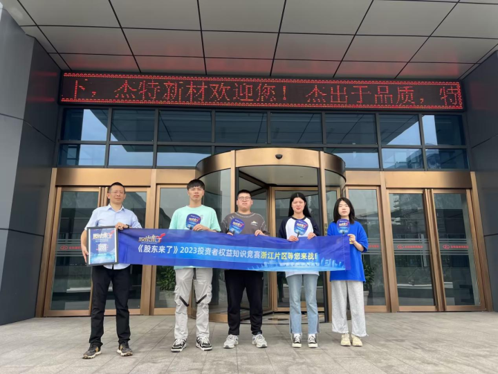 6月19日上午,财通证券海宁长安修川路证券营业部走进嘉兴杰特新材料股份有限公司开展《股东来了》投资者权益知识竞赛的宣传活动。本次活动,营业部的小伙伴们向公司员工介绍了《股东来了》(2023)投资者权益知识竞赛的参赛方法以及参赛规则,并讲解了关于知识竞赛相关防范金融风险的小知识,提醒学生要选择正规合法机构,谨防金融诈骗、高息理财等犯罪违法行为。