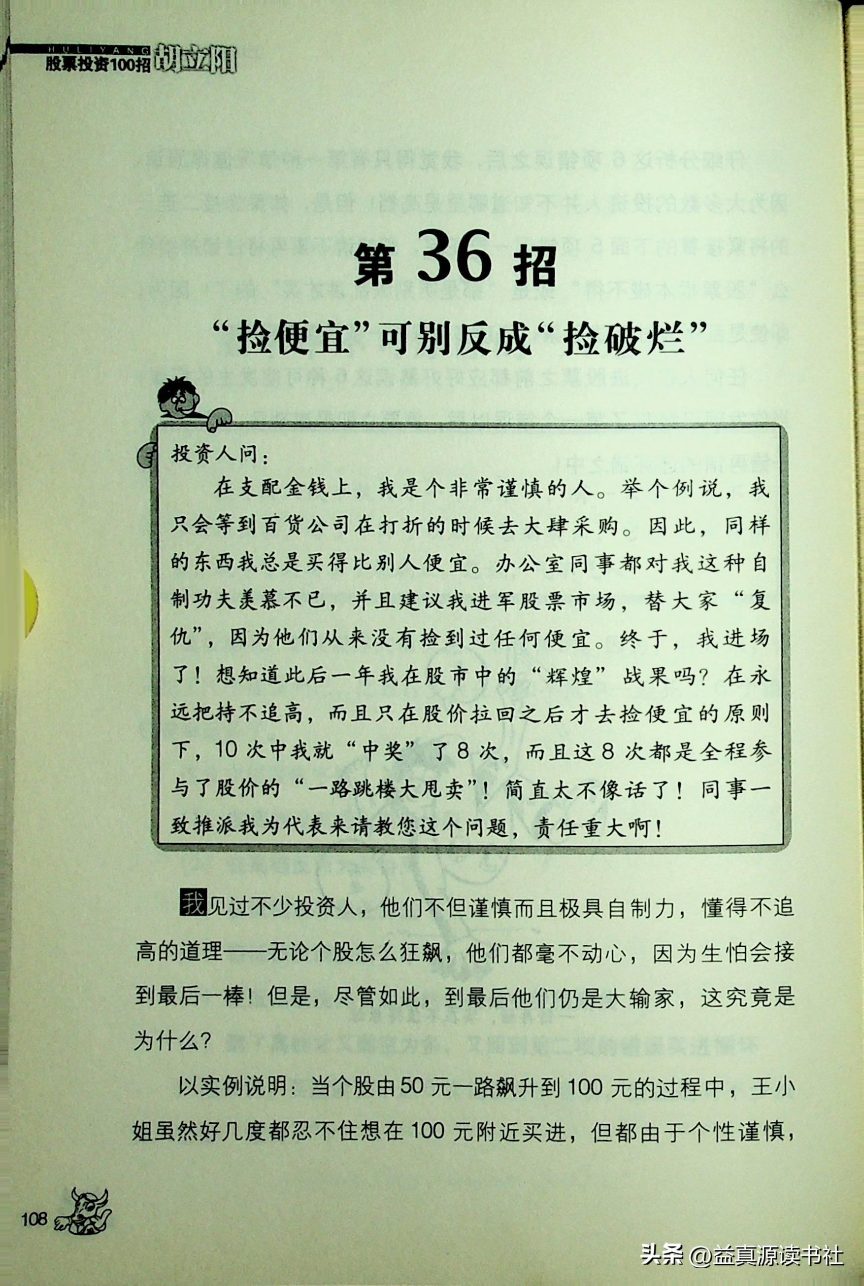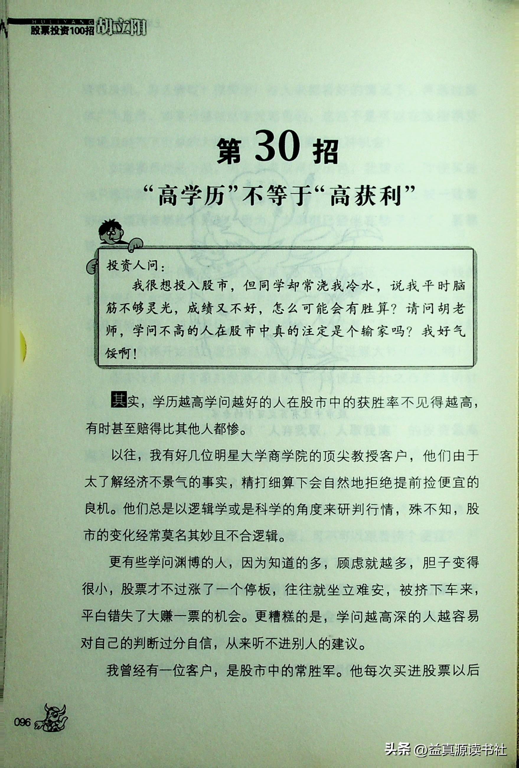 更有些学问渊博的人,因为知道的多,顾虑就越多,胆子变得很小,股票才不过涨了一个停板,往往就坐立难安,被挤下车来,平白错失了大赚一票的机会。