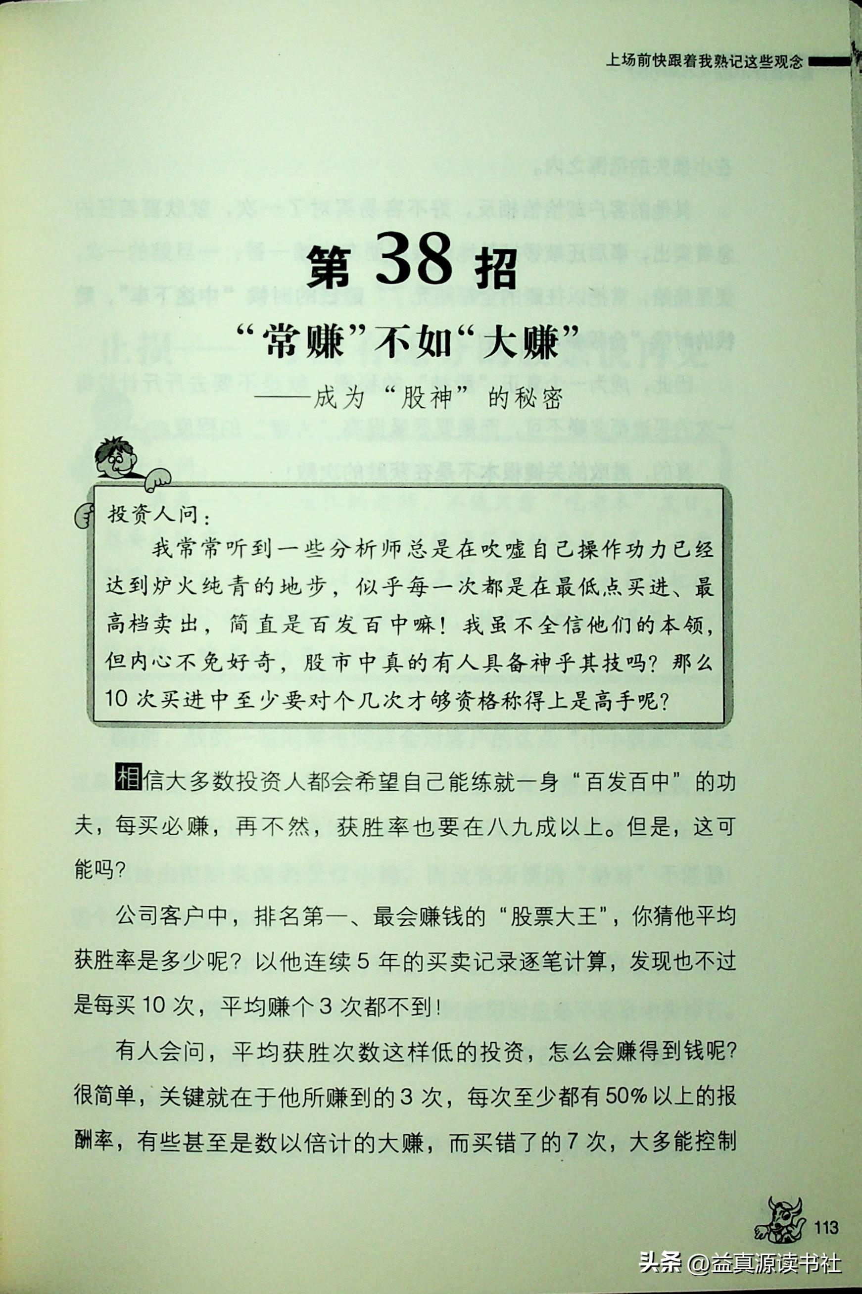 成为一个真正“股神”的秘密,就是不要去斤斤计较每一次的买进都非赚不可,而是要尽量提高“大赚”的程度。