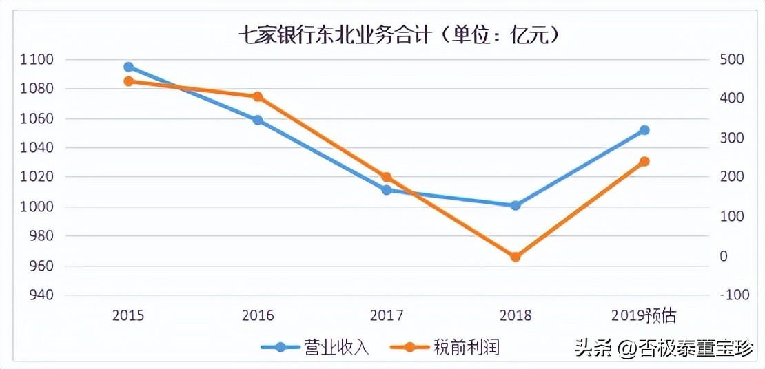 七家银行过去几年在东北地区的主营收入在稳定基础上下浮波动,最高主营收入为1094亿,最低为1000亿,跌幅不超10%。