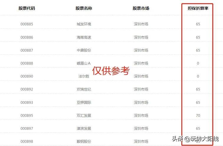 股市中常见的担保品多为股票和现金居多,一般标的证券的折扣率不超过70%,