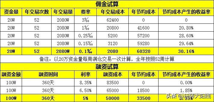 本人试算了不同费率的交易成本和不同融资利率的融资成本,仅供参考学习,不做其他用途。如果有感兴趣的朋友们,欢迎私信或留言。