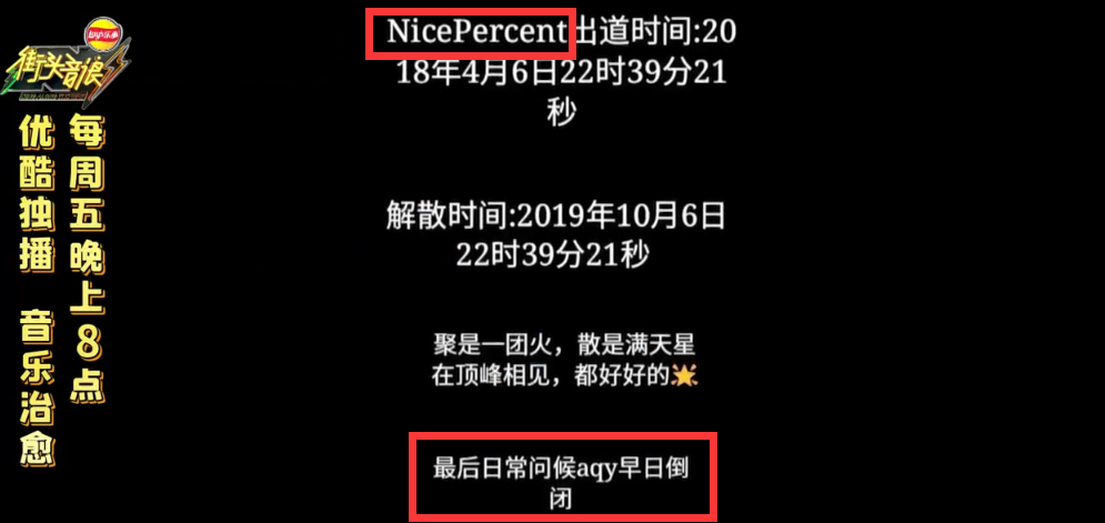 谈到这段回忆,能明显看出,王子异眼里有美好的光,有对兄弟们以及过去的怀念。他的话引起粉丝的共鸣,然而伤感的气氛还没有维持太久,就被优酷接下来的操作惊呆了。大家都知道,王子异所在团叫“ninepercent”,可是优酷却把名字打成了“nicepercent”,很明显的错误。