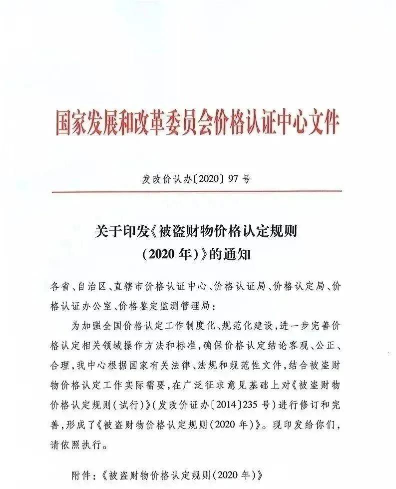 国家发展改革委价格认证中心关于印发《被盗财物价格认定规则(2020年)》的通知