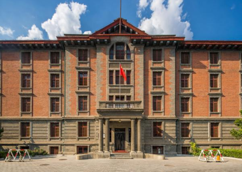 “红楼”建于1916年,1918年落成,为砖木结构,平面呈工字形,东西宽100米,正楼南北进深14米,东西两翼楼南北进深各34.34米,楼高4层,有半地下室,总面积约1万平方米。整座建筑通体用红砖砌筑,红瓦铺顶,因此得名。
