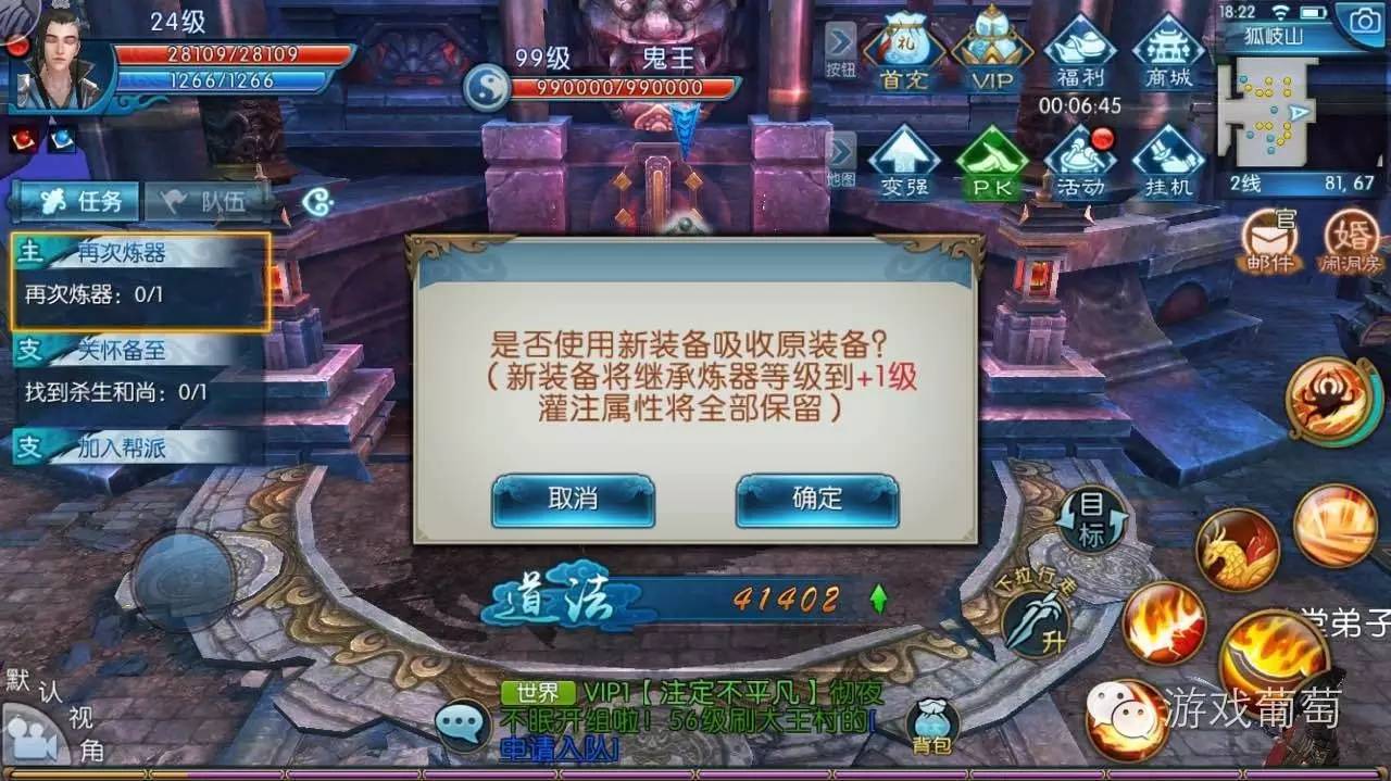 在葡萄君的体验中,打开背包,第一页几乎就被各种符箓给占满了,而且符箓还有“可交易”和“不可交易”的区分,在使用时,对于那些在端游中会比较在意后期发展或是实现经济互动的玩家来说,尽管装备会有属性继承的设定,但无疑又是一种负担,至少玩家在一定时期内需要在装备强化的选择上格外小心。再加上受限于移动设备的条件(比如屏幕较小),体验是比较差的。