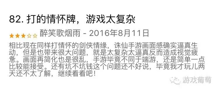 也许《诛仙》在研发时所瞄准的就是以吃小说情怀和端游老本为主要目标,并未将“移动化”作为重点来做相应的改动。即便是享受到了电视剧在泛用户层面建立的品牌认知福利,泛用户或者是单纯的手游用户,几乎也无法适应《诛仙》的游戏节奏,App Store里的部分玩家评论基本也都在表达这一点:作为手游,很多设计都太复杂了,希望可以再简化一些。